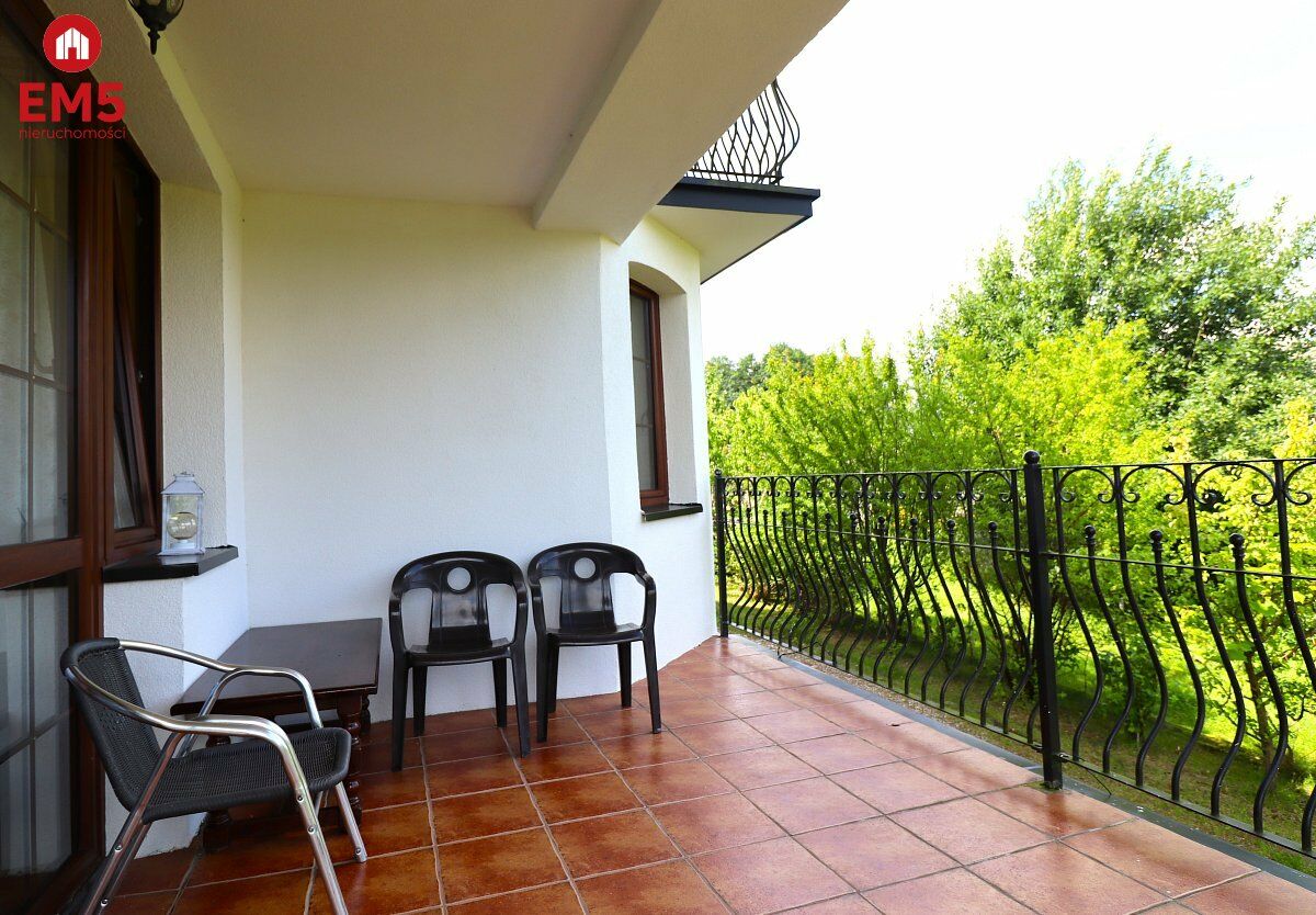Wysoki standard wykończenia: ściany z cegły, ozdobne łuki, design dopracowany w detalach. Dachówka na dachu ceramiczna (czarna), instalacja fotowoltaiczna. Okna trzyszybowe, bardzo dobra izolacja (25 cm styropianu).